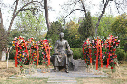河南大学校党委副书记张宝明等依次代表学校、教职工生、校友等不同群体向林先生铜像敬献花篮,林伯襄先生亲属亦亲临现场。全体人员向林伯襄先生铜像默哀致意。