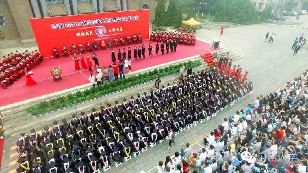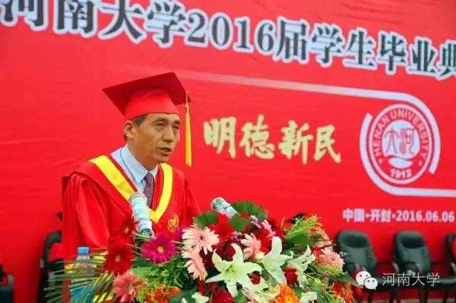 我们的学校,生源是最好的生源,校舍是体面的校舍。我们没有让人羡艳的桂冠,没有可以夸耀于人的名分,我们不必因此而妄自菲薄。我们希望每个河南大学的毕业生,都是一张名片,用各自的成功,证明河大办学的质量;我们也希望各位在以后填写毕业院校时,毫不犹豫地自豪地写下“河南大学”四个字。河南大学的名分,写在共和国河流山川上,写在老百姓口口相传中。