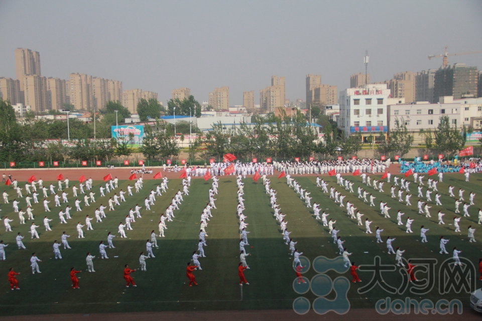 4月21日,河南大学近万名学生齐聚新、老校区操场,展开了一场别开生面的太极拳比赛。