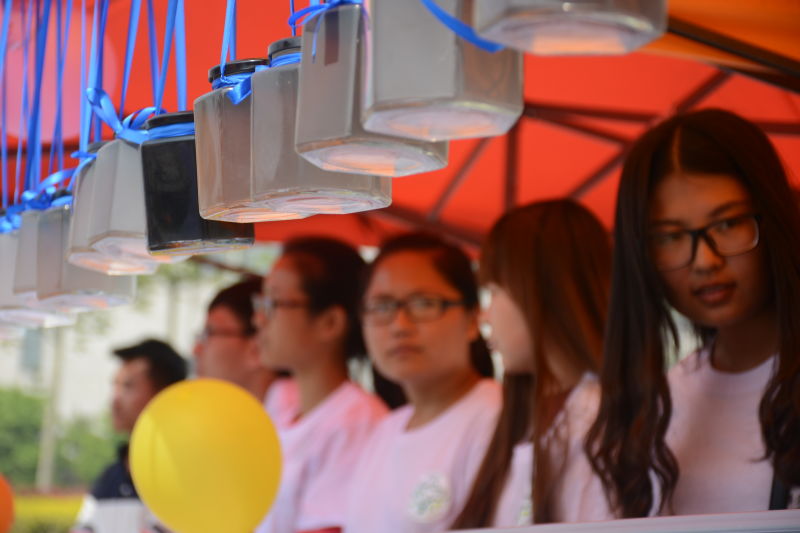 在活动现场,期末复习资料、废旧衣服、小药瓶、塑料瓶等也纷纷变身DIY原料,为蔚蓝天空“摇旗呐喊”。