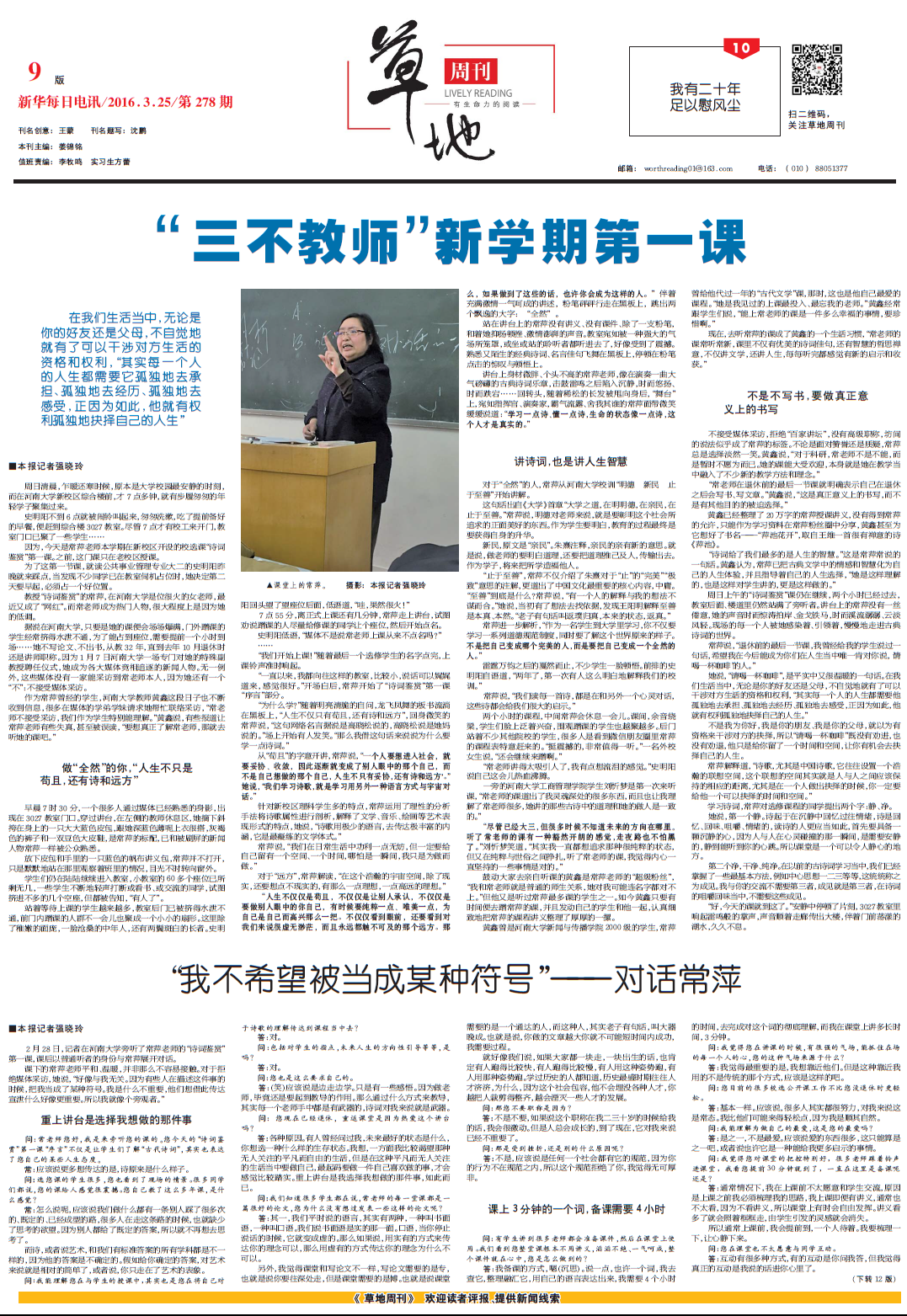 答:也不是很纯粹的事,就是最起码在做事的时候不要被打扰。我希望课堂就是纯粹的课堂,课堂是知识、情感、同时也是人生,也是各种东西交汇的地方,但它绝对不应该是名利场,也不要把这里当成娱乐场所。