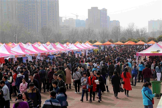 科学网开封讯 (记者史俊庭 通讯员张学峰 高顺欢)“这次招聘会机会难得,所以我们一个月前就开始了解相关招聘信息,准备简历,留意应聘注意事项。今天早上更是6点多就起床,穿上正装,化好淡妆,希望能给面试官留下好印象,得到心仪工作。”3月20日早上8点,河南大学文学院2014级研究生夏红娟和室友一行四人,手拿简历赶往该校金明校区志义体育场,参加河南省豫东分市场大型春季招聘会。