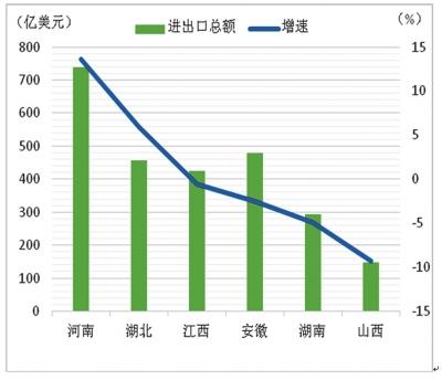 中部六省进出口总额及增速(2015)