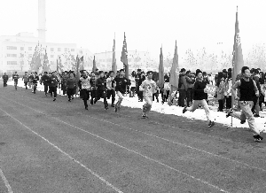 冬日初雪尚在消融,宽阔的塑胶跑道上积雪已被清理完毕。寒风凛冽中,记者看到,一群青春洋溢的河南大学学子正围着400米塑胶跑道慢跑,为即将开始的秋季运动会总决赛做着赛前的热身活动。随着一声指令枪响,比赛正式开始,运动员们如离弦之箭,冲出跑道,向着前方奔去。刚刚跑完2000米赛程的2015级新生范尚宇气喘吁吁地说:“虽然初冬天气寒冷,但是奔跑在赛道上的我觉得浑身热血沸腾,整个人像打了鸡血般兴奋。”