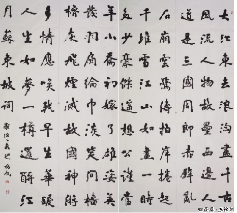 赵振乾书法又得礼与法之观,扩而充之于书道之观。书不以行媚之道,却取精用闳,结草衔环,如辰星列张,勾陈索引,妙得于仁礼。于是,其书法纯如,皦如,绎如,都归于翕如,富于简淡雅正。这礼数、法度、道场,至大至刚,弥纶成为狂狷之美,荡涤出尘滓,结笔墨之因缘,来灌溉自己壮美的自然情怀,勇敢、从容而美丽。