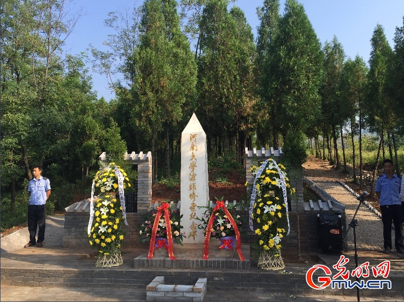 讲述过后,河南大学校领导关爱和、娄源功代表学校全体师生向潭头惨案纪念碑敬献花篮。