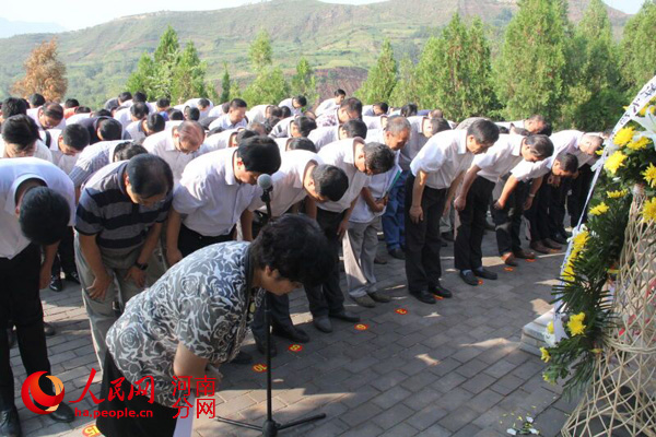 人民网郑州8月26日电 (宋芳鑫)8月25日上午,河南大学主要党政领导干部在洛阳潭头举行抗战胜利70周年纪念活动,祭奠潭头惨案中牺牲的河大英烈,举行河南大学抗战时期潭头办学旧址纪念馆开馆仪式,宣示河大人牢记历史、不忘过去,珍爱和平、加快发展的决心,从追忆历史中汲取精神力量,反思当下,面向未来。