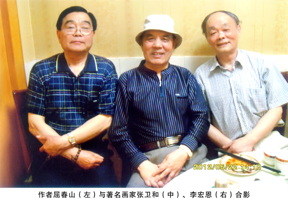 2.作者屈春山(左)与著名画家张卫和(中)、李宏恩(右)合影。