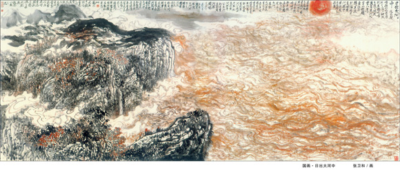 开封的古城巷陌和海南的椰林树影相融合,化为张卫和笔下生机勃勃的笔墨精神和壮丽清润的浪漫风格。知名学者张小虎先生在评论张卫和的艺术成就时说,“山水形象在卫和先生的笔下,又出现了新的风格,融汇传统笔墨,再生奇趣。”