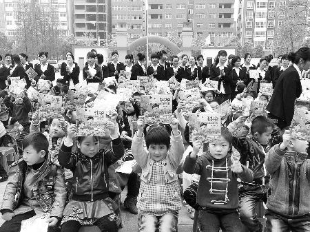 昨日,河南省希望工程办公室、大河报社、河南大学出版社、河南省幼儿教育研究会、共青团南阳市委等单位联合在邓州市幼儿园举行图书捐赠仪式(如图),共向邓州各个乡镇中心幼儿园共计捐书15万多册,捐赠书款达88万多元。