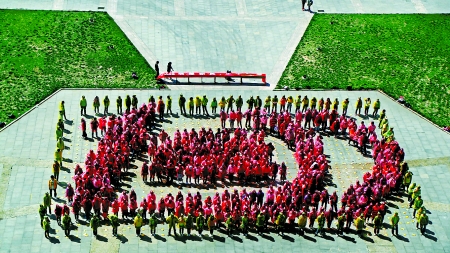 4月13日13时,一幅由1066人组成的河南大学百年校庆纪念徽图案在该校明德广场赫然呈现。河大学子用这一“壮举”为母校百岁生日造势,并向吉尼斯世界纪录发起挑战。