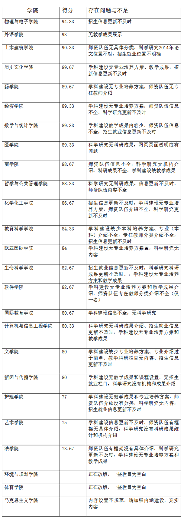 为配合招生宣传,5月31日下午,校党委宣传部会同教务处、招生办、信息化管理办公室对全校有招生任务的25个学院网站进行了检查。现将检查结果公布如下。