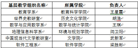 按照河南省教育厅《关于开展河南省高等学校优秀基层教学组织建设工作的通知》(教高〔2017〕201号)精神,经基层教学组织申报、学院推荐、专家评审,学校决定向省教育厅推荐以下6个基层教学组织参加河南省优秀基层教学组织评选,现予以公示。