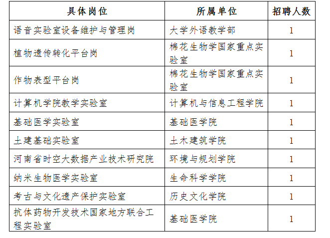 根据河南大学实验室承担工作任务需求,现面向社会公开招聘硕士研究生10名。现将有关事宜公告如下: