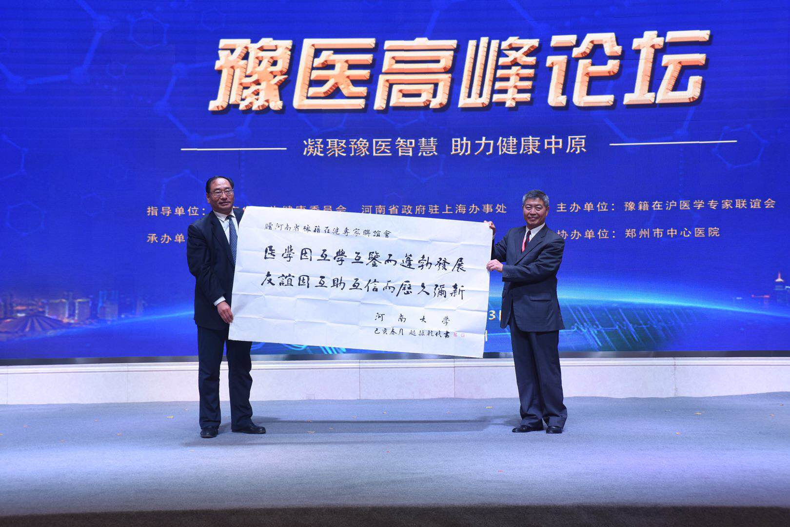 孙君健代表河南大学赠予豫籍在沪医学专家联谊会一幅题为“医学因互学互助而蓬勃发展,友谊因互助互信而历久弥新”的书法作品,表达了双方对此次合作寄予的肯定和希望。同时,论坛对复旦大学附属肿瘤医院常才教授、同济大学-上海市第十人民医院刘占举教授和上海瑞金医院刘军教授授予“杰出豫医奖”称号。