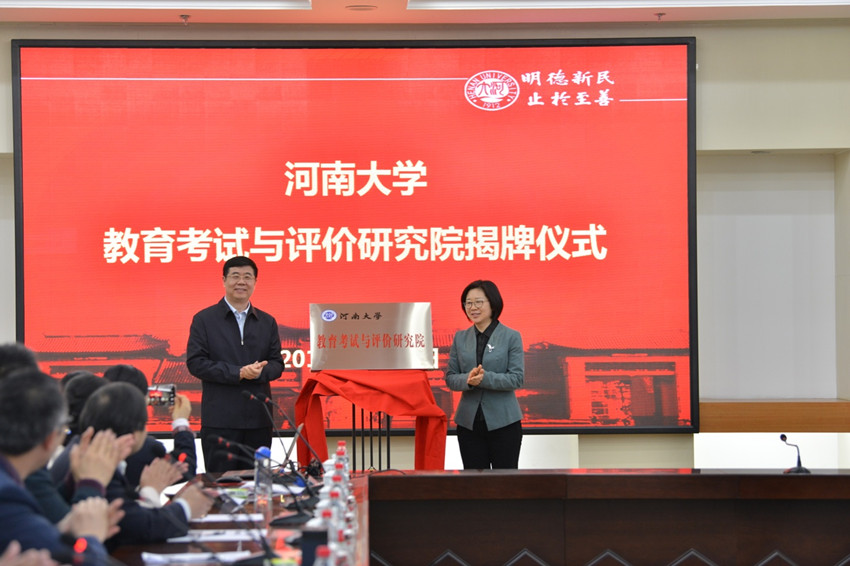 4月14日,教育考试与评价研讨会暨河南大学教育考试与评价研究院揭牌仪式在金明校区举行。河南省教育厅副厅长毛杰,华东师范大学终身教授、华东师范大学考试与评价研究院院长陈玉琨教授,北京市原教育考试院副院长臧铁军研究员,西南大学副校长、教育学一级学科评议组成员靳玉乐教授,清华大学教育研究院常务副院长、长江学者、教育学一级学科评议组成员石中英教授,教育部教材局研究员、教育部基础教育课程教材专家工作委员会办公室副主任柳夕浪同志,北京市教育督导与教育质量评价研究中心主任赵学勤研究员,华东师范大学教育学部副主任、教育部人文社科重点研究基地课程与教学研究所副所长柯政教授,河南大学校党委常委、副校长刘志军及相关部门领导与会。仪式由教育科学学院党委书记宋伟主持。