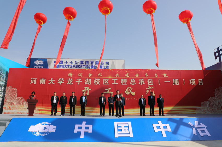仪式上,校党委书记卢克平宣布河南大学龙子湖校区工程总承包(EPC)一期项目开工。中国十七冶集团有限公司总经理刘安义,校党委常委、副校长、龙子湖校区建设与管理委员会党工委书记、主任许绍康,郑东新区管委会党工委委员、智慧岛大数据试验区管委会主任陈平山分别致辞。开工仪式由校党委常委、工会主席沈洁霞主持。
