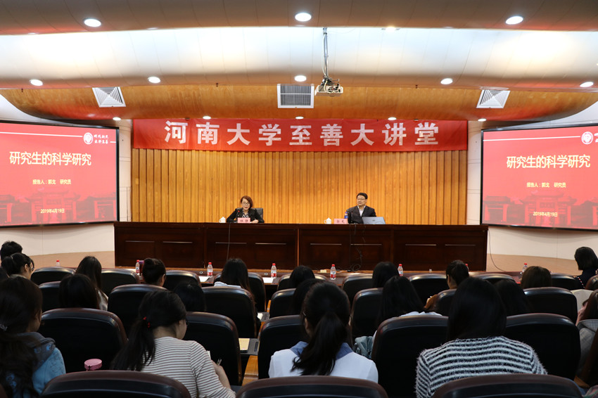 郭戈以自己在河南大学求学的亲身经历作为切入点,紧紧围绕当代研究生切实关注的话题,从“什么是科研”、“找到最适合自己的兴趣点”、“如何创新”等部分进行展开,指出了科研对于研究生乃至整个社会发展的重要性。他表示,要把“创造性研究”思维作为一种自然而然的学习方式、生活方式,鼓励在读研究生要坚持写文章、多发表学术论文。