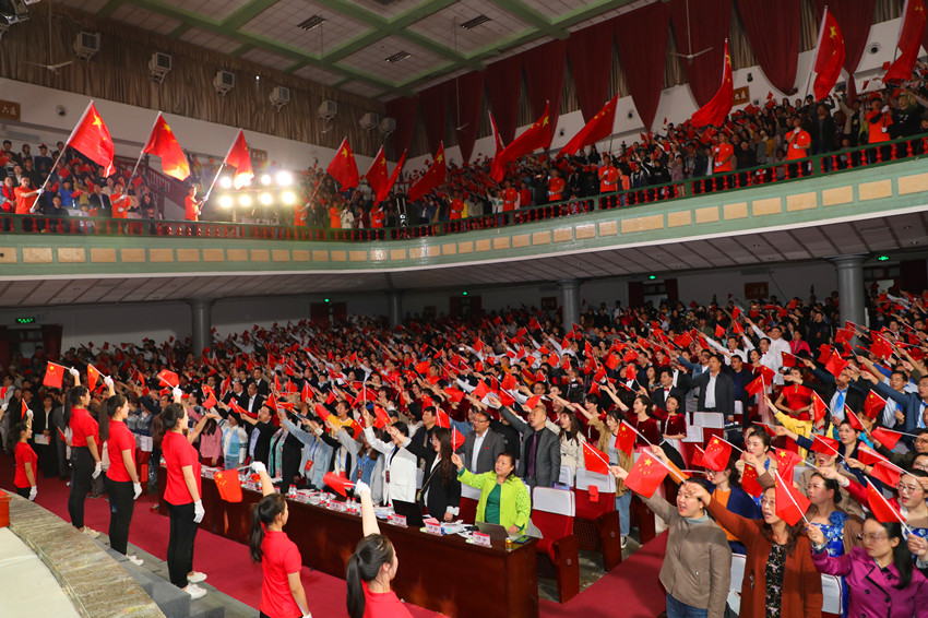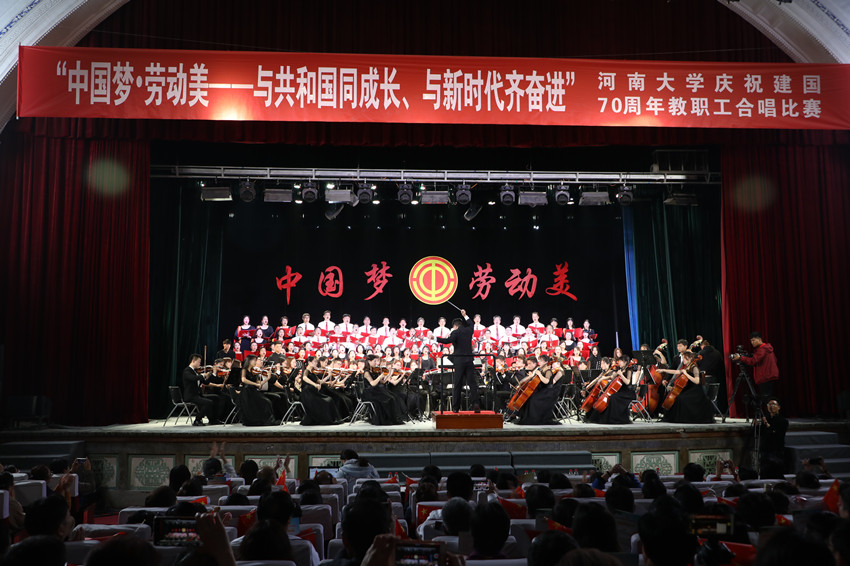 4月25日晚, “中国梦·劳动美——与共和国同成长、与新时代齐奋进”河南大学庆祝建国七十周年教职工合唱比赛决赛在明伦校区大礼堂隆重举行。
