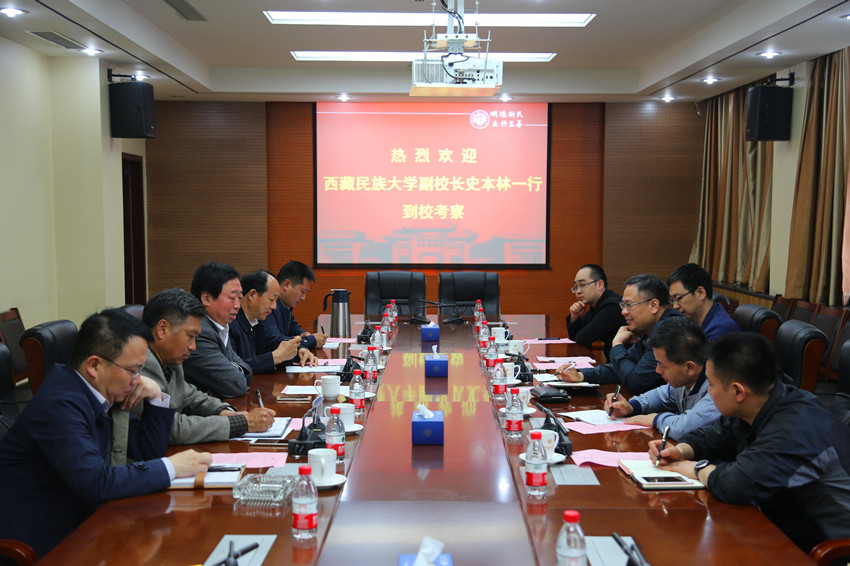 4月25日下午,西藏民族大学校党委常委、副校长史本林带领该校相关部门负责人一行来校,就校区建设、机构管理等工作进行研究交流。校党委常委、副校长许绍康及学校相关职能部门负责人,在金明校区行政楼208会议室与客人进行了座谈交流。座谈会由发展规划处处长宋战利主持。