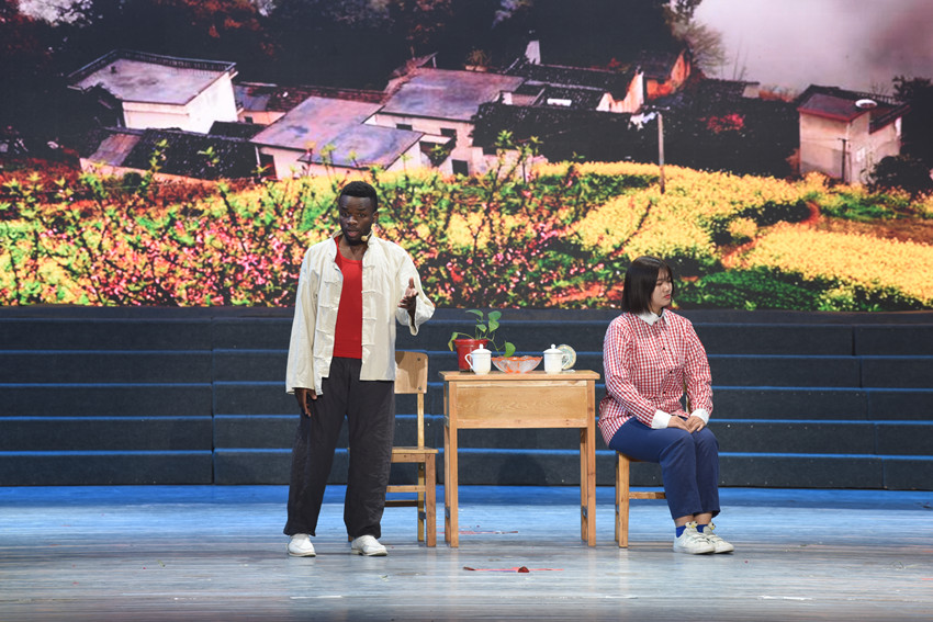同时,此次国家艺术展也有许多富含中国元素的节目。埃及学生笑菲与莎丽带来的《中国话》,活泼灵动,节奏明快,她们流利的中文绕口令震撼全场;国学经典篇目《声律启蒙》的演唱清丽动人,“云对雨,雪对风,晚照对晴空……”,甜美的歌声环绕礼堂,沁人心脾。而来自喀麦隆的叶伟宁与中国的许嘉璐为观众们带来的豫剧《朝阳沟选段——我坚决在农村干它一百年》,更是抑扬有度,行腔酣畅,极富神韵,引得满堂喝彩。