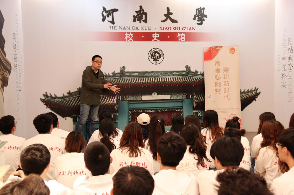 思政课青年教师代表、马克思主义学院教师张涛在校史馆现场为青马班学员讲授题为“‘五四运动’的当代价值与意义”的微团课