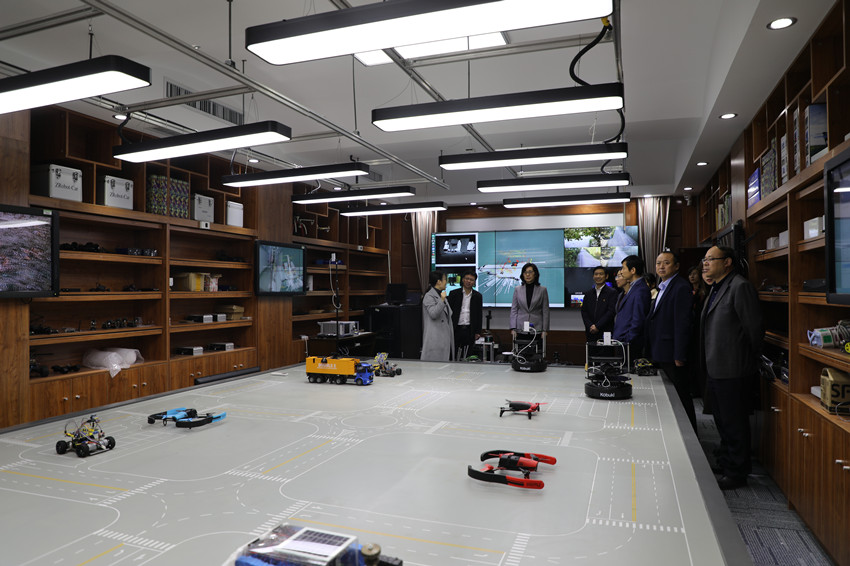 仪式结束后,在雷霆及我校相关职能部门和学院负责人的陪同下,郭岩松一行实地考察了我校河南省车联网协同技术国际联合实验室、计算机与信息工程学院网络信息安全实验室、河南大学新闻与传播国家级实验教学示范中心、河南省教育新媒体暨舆情研究中心等地,详细了解我校在大数据研究和应用、网络安全教育研究、网络意识形态工作开展、承接重要项目、网络传播研究及对地方发展提供支持、服务等方面的情况。