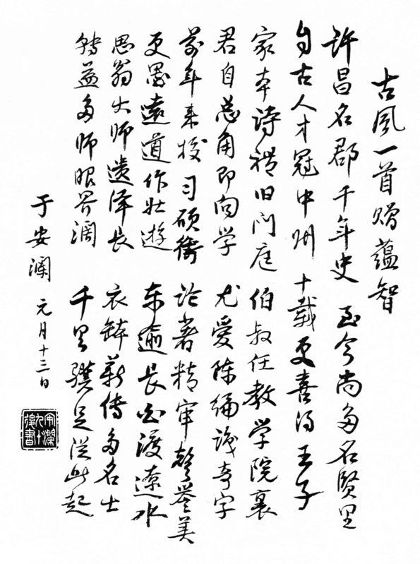 于安澜先生《古风一首赠蕴智》