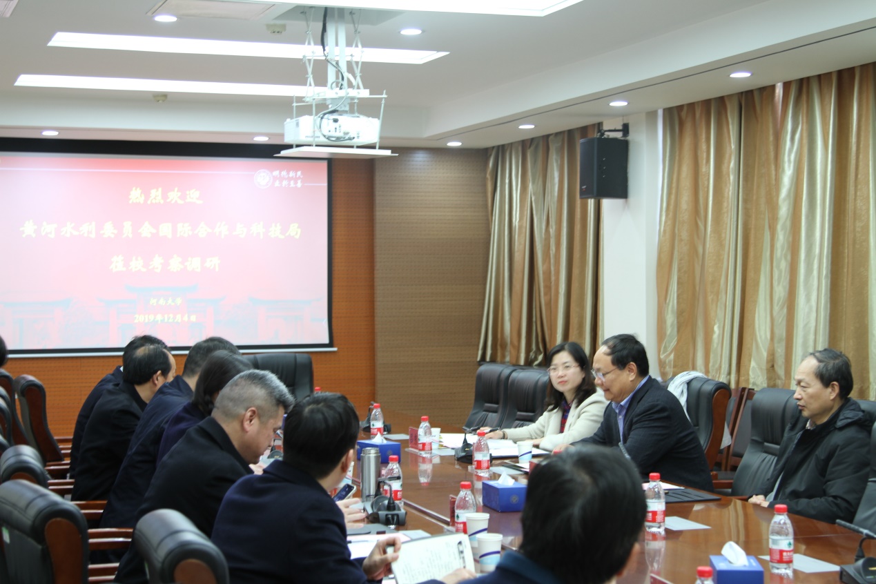 12月4日下午,黄河水利委员会国际合作与科技局局长尚宏琦、副局长张国芳、处长吕秀环一行3人来校座谈,校党委常委、副校长刘先省在金明校区行政楼208会议室会见了尚宏琦一行。发展规划处、实验室与设备管理处、科学技术研究院、人文社科研究院等相关部门负责同志和相关研究领域专家学者参加了座谈会,座谈会由刘先省主持进行。