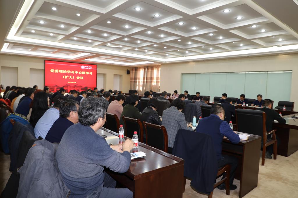 12月4日下午,校党委理论学习中心组在金明校区图书馆三楼会议室召开扩大会议,深入学习党的十九届四中全会和省委十届十次全会精神。在校校领导、校两委委员、基层党组织书记参加会议。