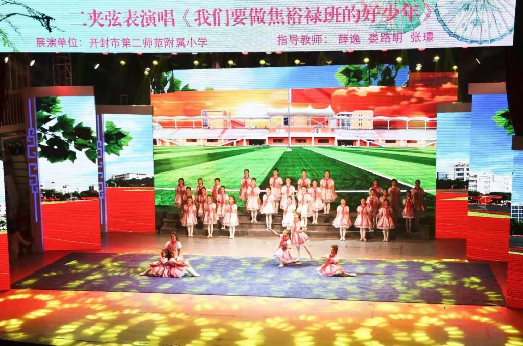 晚上七点,演出正式拉开帷幕。河南艺术职业学院为大家带来《桃李芬芳》开场秀,表演在短短几分钟里表现了中国戏曲“基功武把身段水袖”的神韵,吸引了所有观众的注意,曲毕,掌声雷动。演出分为三个篇章,在第一篇章:花儿新声伊始,开封市第二师范附属小学根据开封地方戏种“二夹弦”的曲调再度创作的一首曲目《我们要做焦裕禄班的好少年》展现了河南兰考县委书记焦裕禄崇高精神跨越时空、历久弥新,开拓进取的宝贵精神财富。