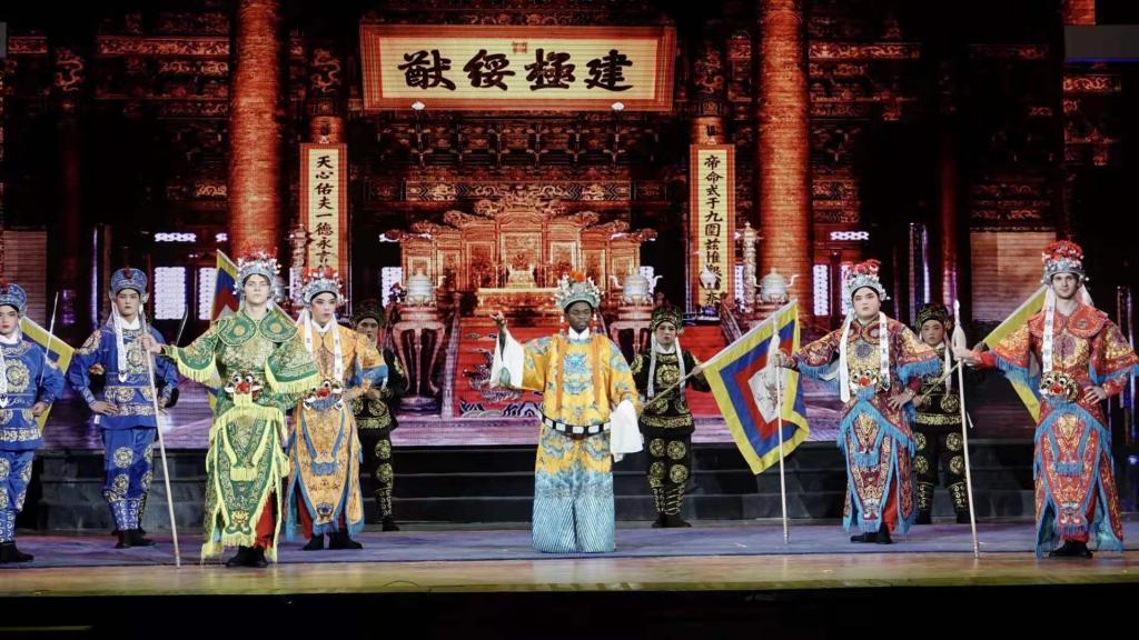 今日一曲共唱响,梨园欢歌醉八方,中华戏曲要弘扬,青春年少来担当。在最后篇章:风华正茂中,我校祥符豫韵剧社带来的豫剧《大登殿•我一见老母亲上金殿》更是别有一番风味,来自喀麦隆的刘汴京,来自白俄罗斯的罗曼和来自俄罗斯的吉玛等留学生社员为现场观众带来了具有异国风情的中原文化,他们唱腔纯正,韵味醇美,悠扬婉转,赢得了全场观众的喝彩。这不但是对国粹经典传承与创新的结合,更是中国优秀传统文化向外输出的标志。最后,濮阳杂技艺术学校戏曲学院带来豫剧《飞夺泸定桥》,作为本场演出最后一个节目,她不但在表演中重现了红军长征时的艰险困苦,让观众身临其境,更体现了红军忠于人民革命事业,前赴后继不怕牺牲的大无畏精神。