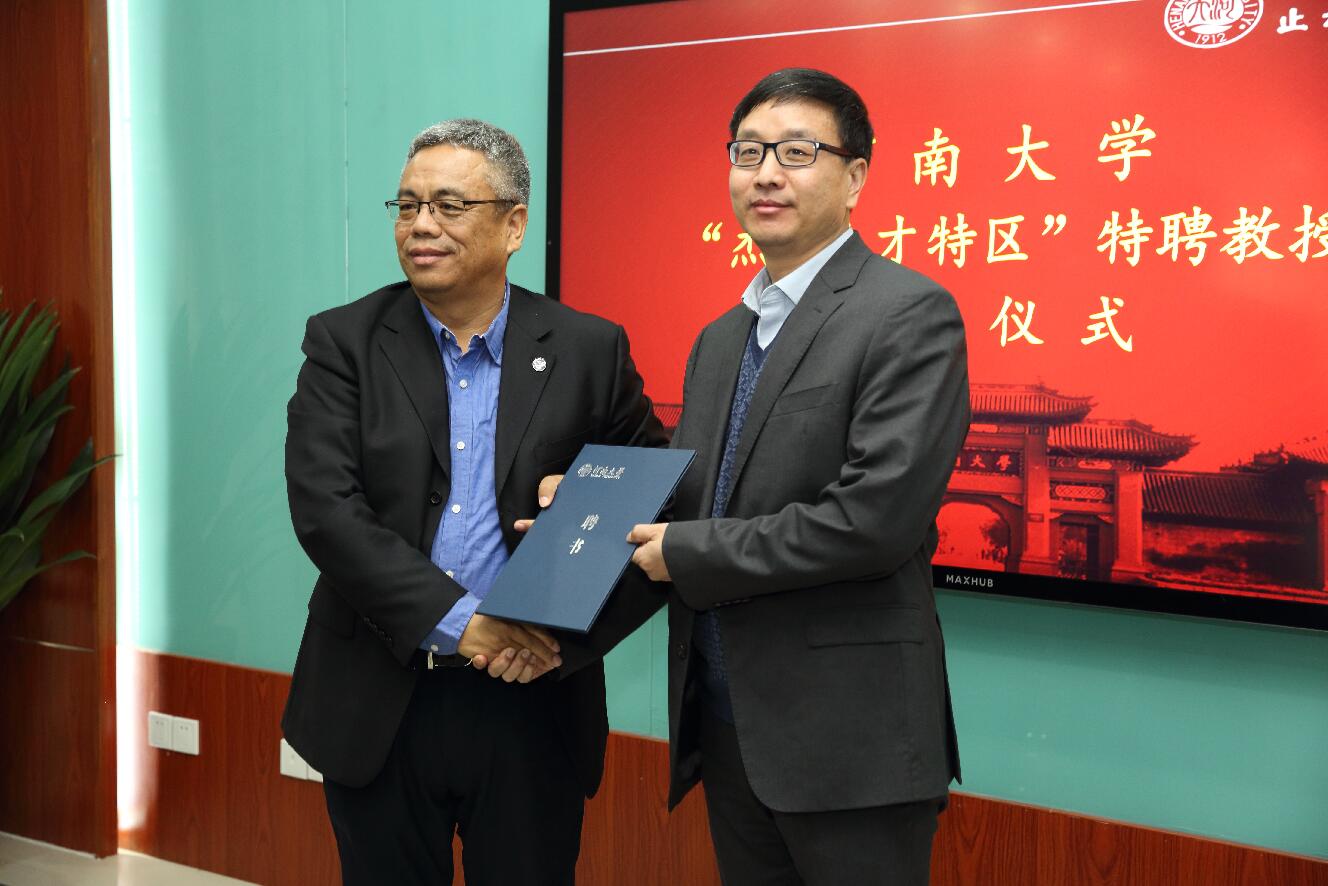 卢克平代表学校为王学路教授颁发了聘书。他代表学校对王学路教授的加入表示热烈的欢迎,他认为这次聘任不但是双方心灵的契合、事业的结合,更是责任和义务的明确。他对学校职能部门和基层单位在服务高层次人才工作方面提出了明确的要求,要求大家带着双一流建设的使命感服务高层次人才;带着爱岗敬业的责任感做好服务工作;带着真情实感做好服务工作。卢克平希望王学路尽快融入河南大学大家庭,在新的平台做出更大的成绩。