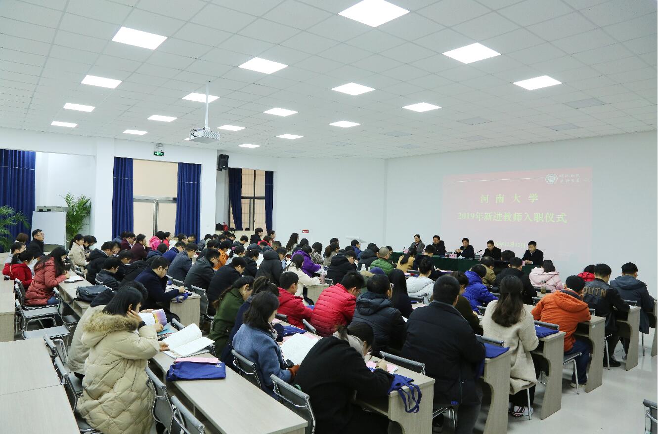 12月12日下午,河南大学2019年新教师入职仪式在明伦校区科技馆一楼报告厅举行。校党委常委、副校长杨中华,人事处(党委教师工作部)、教师教育发展中心、人文社科研究院等相关职能部门负责人及2019年新进的90名专任教师、辅导员、实验员参加了仪式。仪式由党委教师工作部副部长张烁主持。