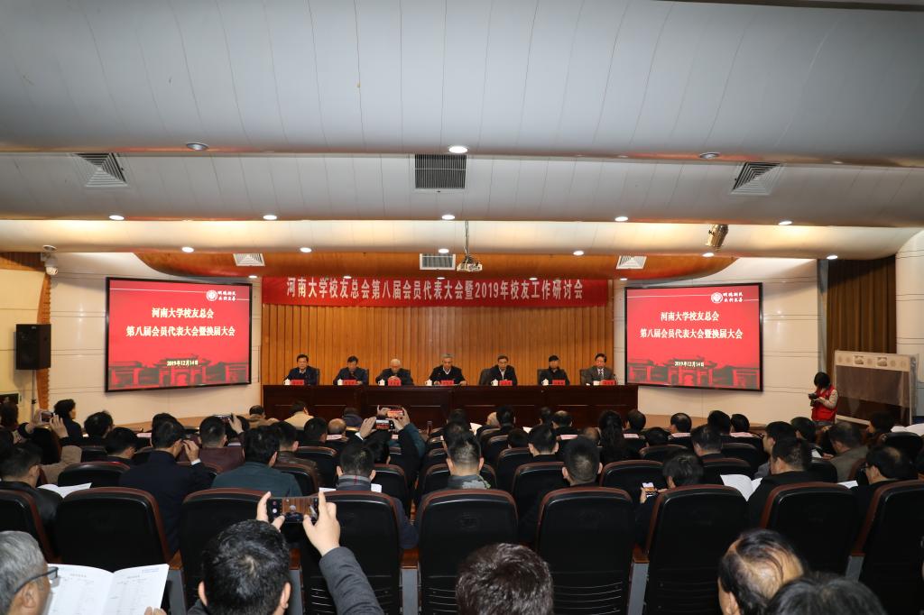 12月14日上午,河南大学校友总会第八届会员代表大会暨2019年校友工作研讨会在金明校区行政楼249报告厅举行。校领导卢克平、宋纯鹏、张宝明、许绍康、孙功奇,原校领导王文金、孙培新,河南大学各地校友会会长、秘书长等代表,河南大学校院两级校友与基金工作负责人等参加会议。大会分别进行会员代表大会暨换届大会、校友总会第八届理事会第一次会议、校友工作研讨会等议程,由校党委副书记张宝明,校党委常委、副校长、校友总会第七届理事会副会长许绍康,校友工作与教育发展基金会办公室主任、校友总会秘书长、基金会秘书长刘波分别主持。