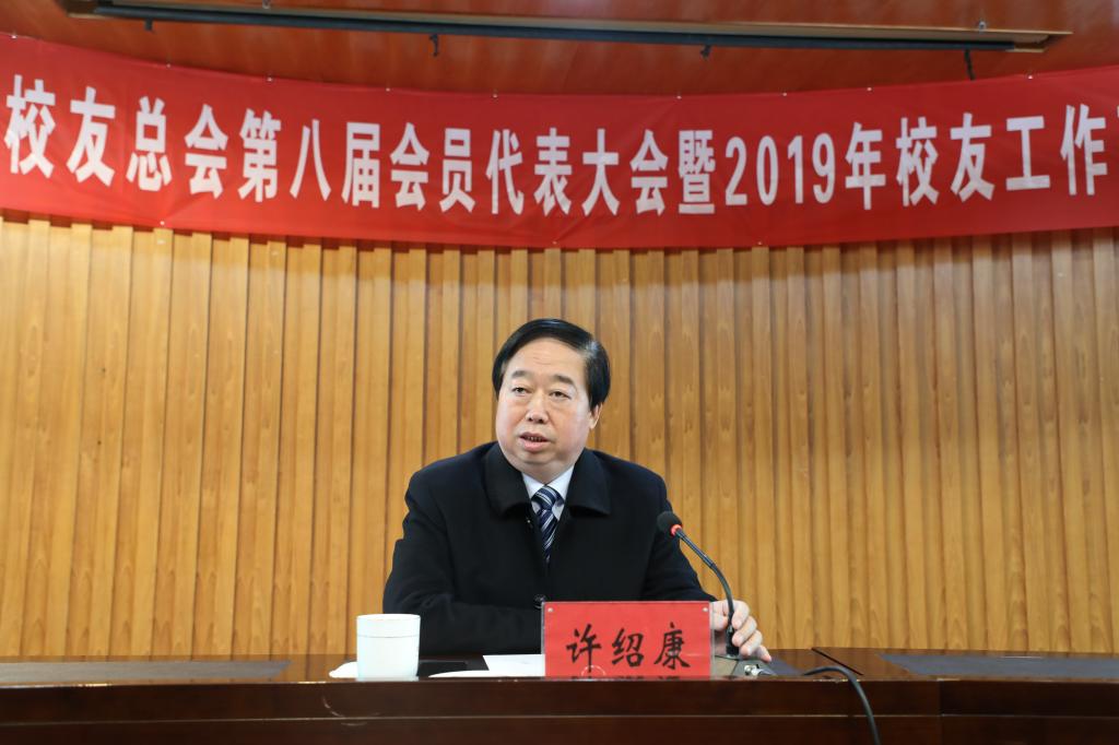许绍康向大会作校友总会第七届理事会工作报告。他表示,自第七届理事会组建以来,校友工作出现新变化、再上新台阶,具体表现在:党建工作不断加强、校友工作力度持续加大、地方校友组织建设稳步推进、校友联络员队伍继续壮大、校友联络服务平台积极改进、校友信息数据库充实完善、校友力量进一步凝聚、学校红色基因传承弘扬、校友活动勇于创新等。许绍康对第七届理事会财务收支情况进行说明,并就校友总会未来一个时期工作提出建议:一是校友联络服务平台建设力度要进一步加大;二是地方校友组织建设与管理要严格规范化;三是校友事业发展支持力度要持续加强;四是校友工作实效要不断提高;五是校友工作机制要努力创新。