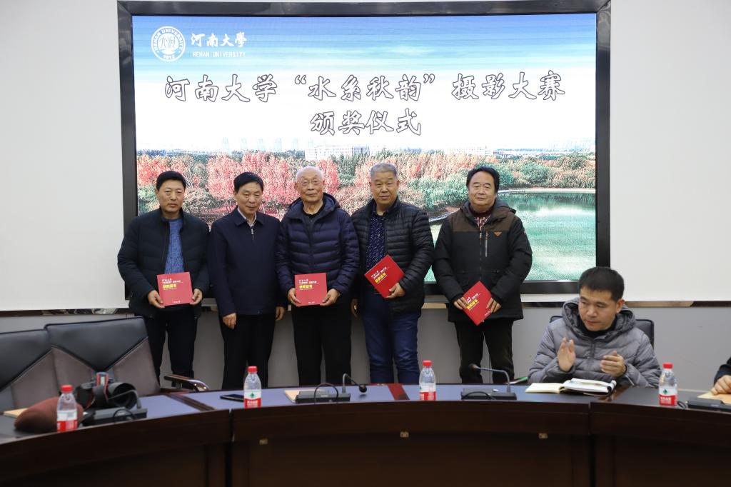 12月18日,河南大学“水系秋韵”摄影大赛颁奖仪式在金明校区行政楼152会议室举行,校党委常委、副校长杨中华,校长办公室、总务处(后勤集团总公司)、美术学院相关负责人出席仪式。仪式由发展规划处副处长乔石豪主持。