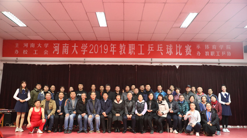 12月23日,经过近一个月的激烈角逐,河南大学2019年教职工乒乓球赛在明伦校区教职工活动中心落下帷幕。校工会主席沈洁霞及全校各单位代表们、参赛队员们、乒协会员们参加闭幕式。校工会副主席边海潮主持闭幕式。