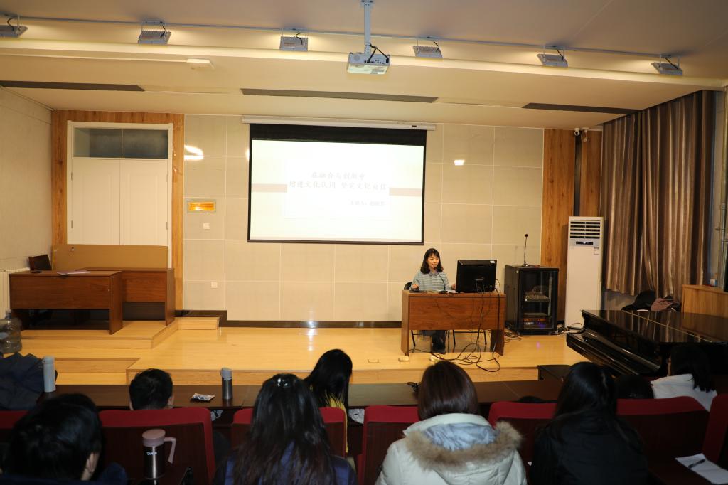 校新闻中心副主任赵晓芳博士,以《在融合与创新中增进文化认同 坚定文化自信》为题,以党的十九大报告为出发点,结合河南大学与香港百年历史关系、开封市与河南省优秀文化实例等,重点阐述了“为什么要文化认同?”“为什么要文化自信?”“哪些文化值得我们自信?”“如何将中国优秀文化运用到自己的工作、生活和学习中?”“教师在文化自信强国道路上能做些什么?”等五个重要问题,为交流团一行做了精彩报告。在一个多小时的专题讲座中,赵晓芳结合大量丰富生动的具体实例,充分展示了中华文化的博大精深与独特魅力,并针对作为教师如何进一步传承好与发扬好中国优秀文化,分享了自己的建议。