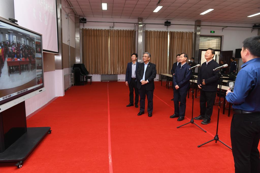 仪式结束后,双方领导参观了我校校史馆,考察了老年大学计算机教室、声乐教室、书画教室和综合教室,并通过互联互通视频系统,与开封、新乡、周口等地市老干部大学进行了互动交流。