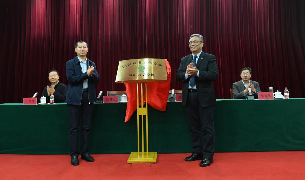 段君海和卢克平共同为河南省老干部大学河南大学分校揭牌。我校博士生导师赵振乾教授、退休干部梁海燕作为师生代表分别发言,他们表示要继续发挥作用,推动我校老年教育蓬勃发展。