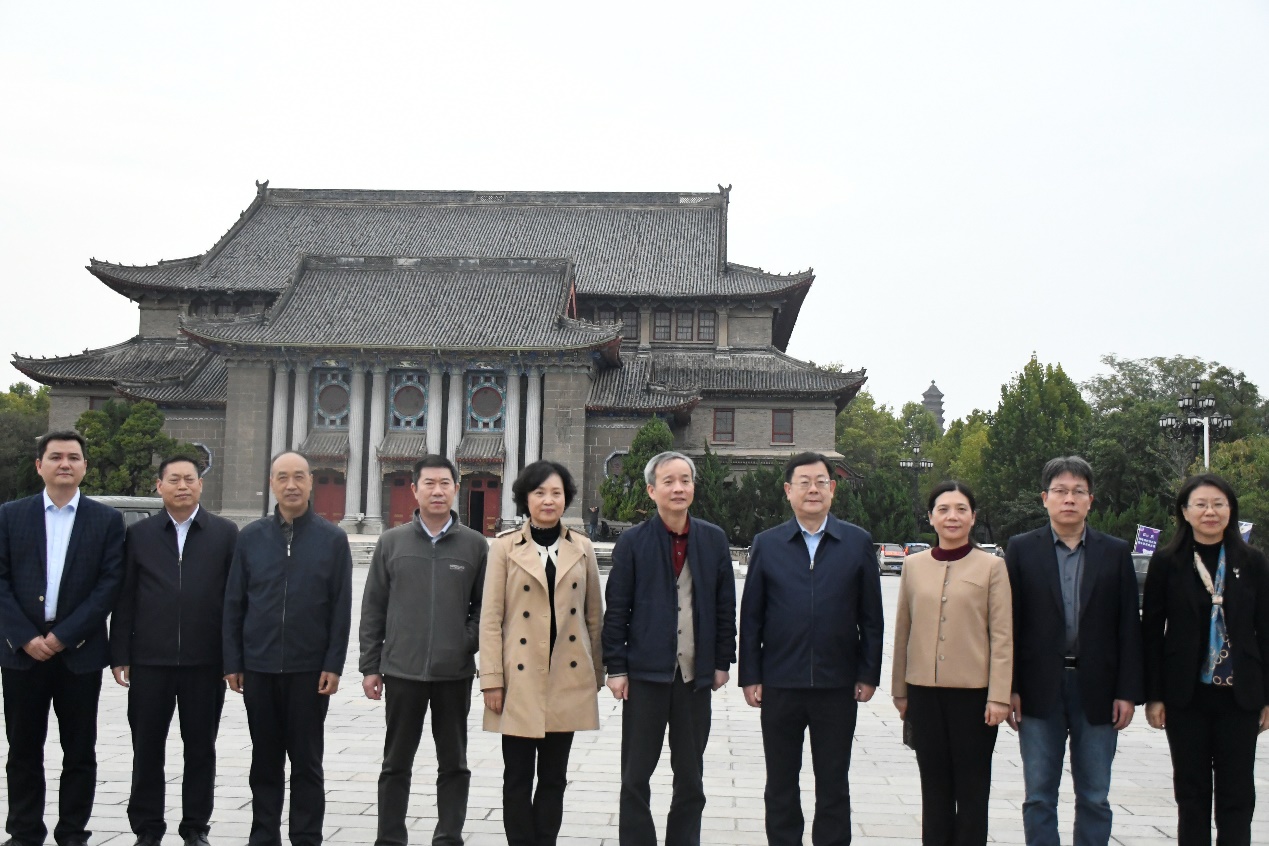 郭哲一行从明伦校区南大门出发,沿着博雅路前行,依次参观了河南留学欧美预备学校旧址、六号楼、文物馆、七号楼、大礼堂、校史馆等,并在大礼堂前合影留念。参观过程中,郭哲详细了解了我校109年的历史沿革与发展脉络,对河大人自强不息、百折不挠、艰苦奋斗的光辉历程,“百折不挠,自强不息”的河大精神提出高度赞赏。