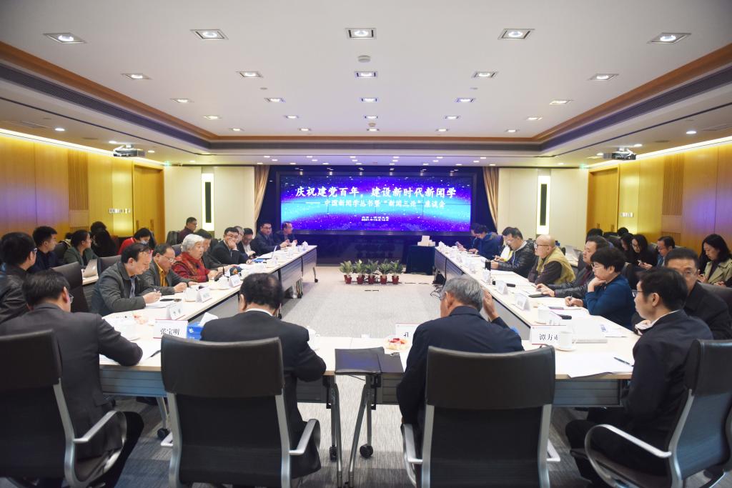 为庆祝建党百年,研讨新时代新闻学的建设,2021年10月16日下午,由中信改革发展研究基金会、清华大学马克思主义新闻学与新闻教育改革研究主办,河南大学出版社、清华大学新闻与传播学院、中国特色新闻学研究委员会承办的“庆祝建党百年,建设新时代新闻学——‘中国新闻学丛书’暨‘新闻三论’座谈会”在京召开。中信改革发展研究基金会理事长孔丹,清华大学新闻与传播学院院长、第十二届全国人大常委、教科文卫委员会主任委员柳斌杰,教育部社会科学司副司长谭方正,河南大学党委副书记张宝明出席座谈会并致辞,专家学者、丛书作者、出版社相关人员、媒体记者等40多人参加座谈会。