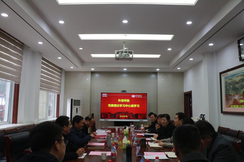 2021年10月19日上午,校党委副书记季波到外语学院参加党委理论学习中心组学习。校党委常委、宣传部部长王明钦,校党委宣传部副部长乔石豪,外语学院党委委员、班子成员、两办主任参加会议。会议由外语学院党委书记肖艳主持。