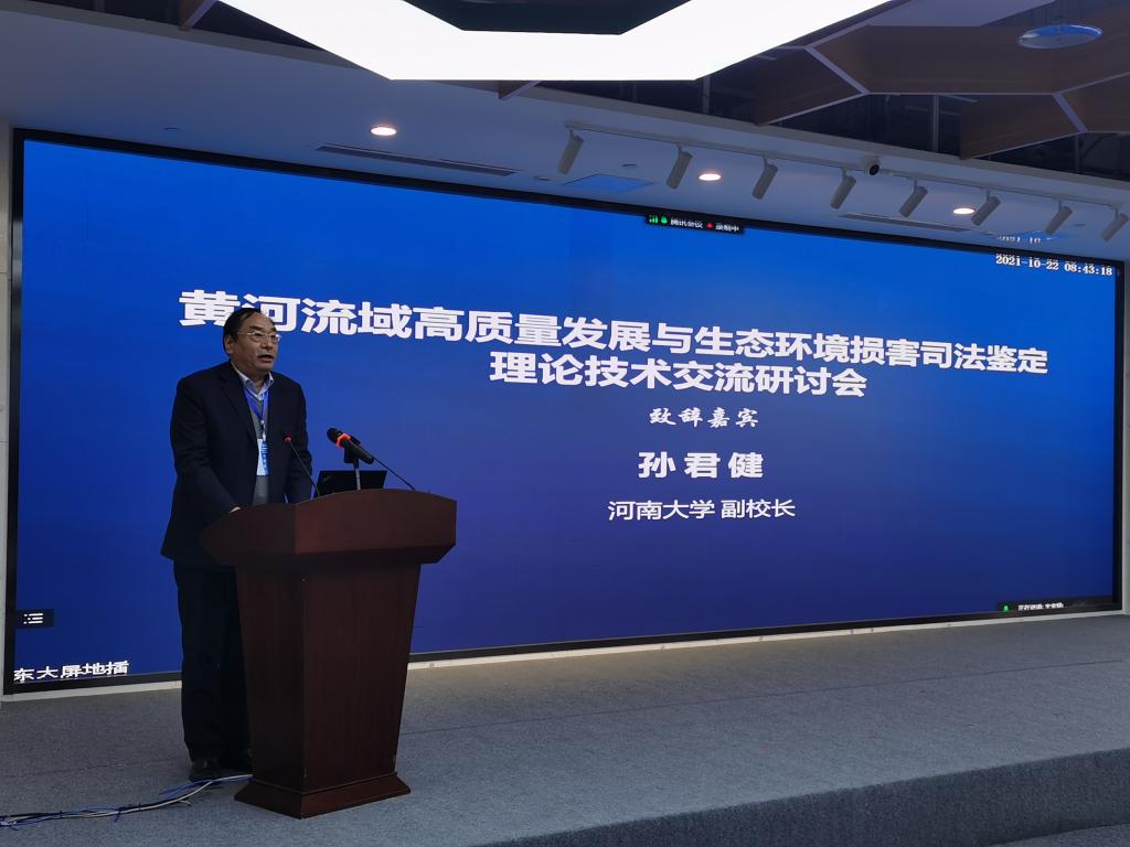 研讨会开幕式上,校党委常委、副校长孙君健在致辞中对研讨会的成功举办表示衷心祝贺。他指出,举办黄河流域高质量发展与生态环境损害司法鉴定理论技术交流研讨会,对深入贯彻落实生态文明思想,以实际行动助力黄河流域生态保护和高质量发展,创新生态环境损害司法鉴定评估理论和方法,推动黄河流域生态环境保护取得新的更大成效,具有重要的现实意义。他介绍了河南大学与黄河的深厚渊源以及近年来学校围绕黄河流域生态保护和高质量国家战略所做的工作。河南大学长期致力于黄河与黄河文明研究,历史积淀深厚,百年办学路深深镌刻下黄河的印迹,始终与黄河息息相通,密不可分。经过几代人的不懈努力,河南大学已成为国内外研究黄河文明和沿岸地区可持续发展的学术高地和高端智库、世界大河文明交流与互鉴的重要平台。