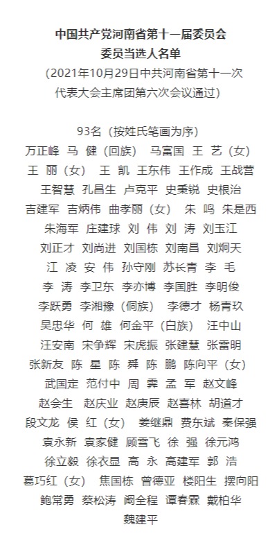 10月26日上午,中国共产党河南省第十一次代表大会在省人民会堂隆重开幕。省第十一次党代会是在我们党成立100周年的历史节点、开启全面建设社会主义现代化河南新征程的重要时刻召开的一次重要的大会,是全省人民政治生活中的一件大事。10月29日,中共河南省第十一次代表大会主席团第六次会议通过《中国共产党河南省第十一届委员会委员及候补委员名单》,我校党委书记卢克平同志当选中国共产党河南省第十一届委员会委员。