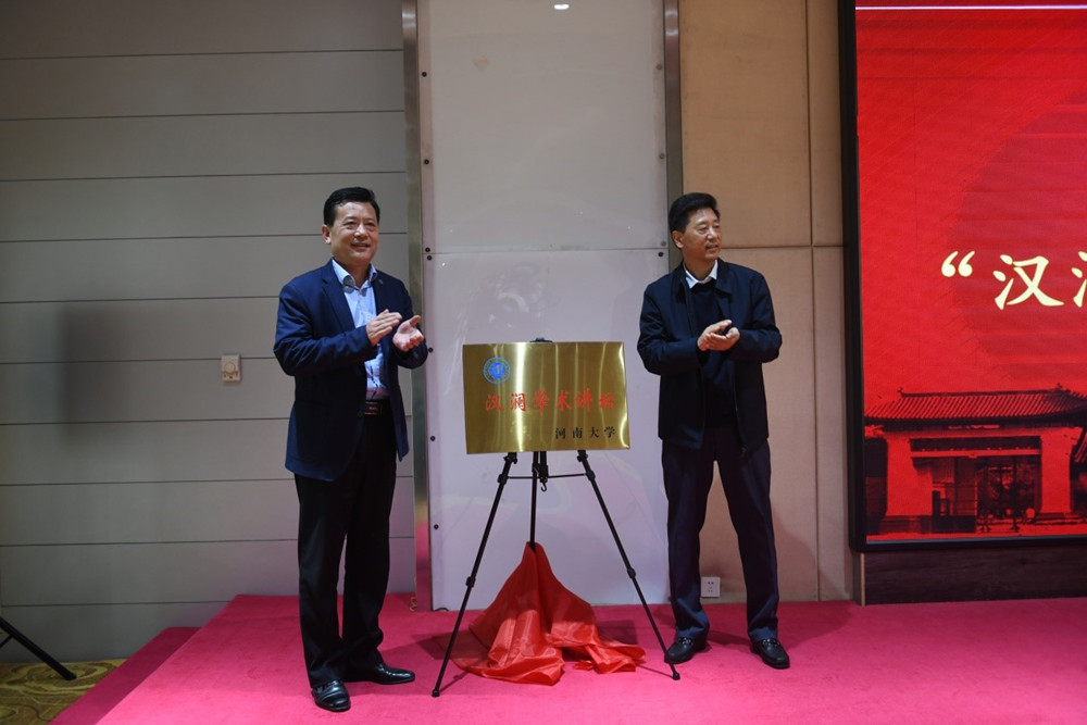 靳玉乐、孙功奇共同为“汉澜学术讲坛”揭牌,宣布讲坛正式启动,并与班子成员、教师代表一起合影留念。