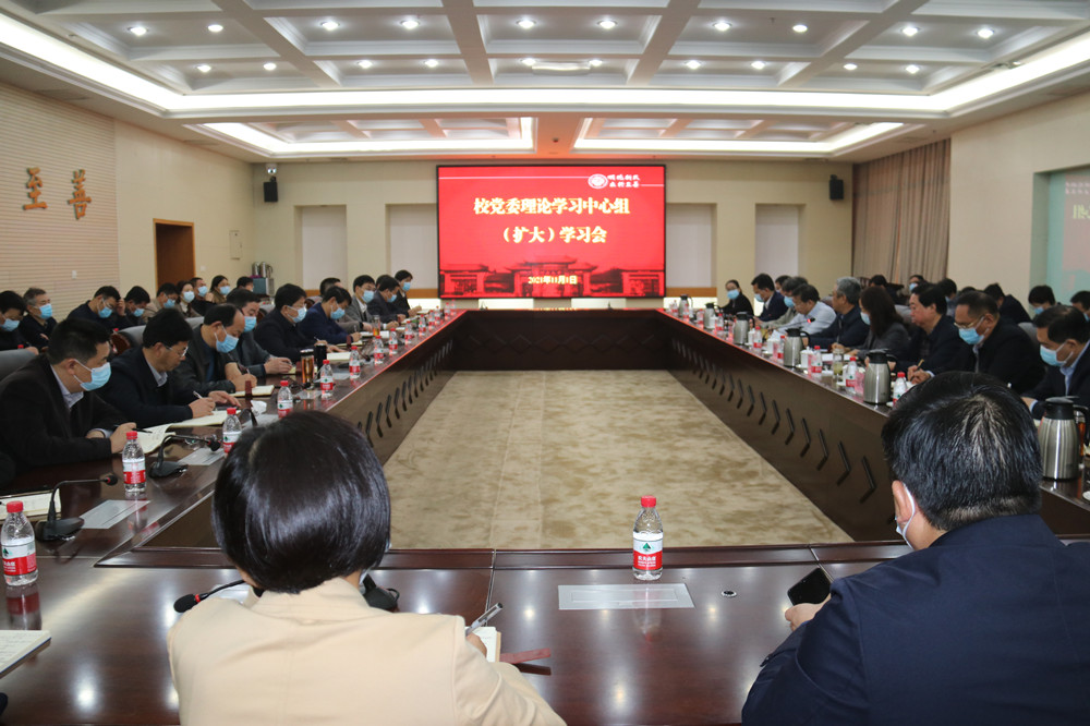 11月1日,校党委理论学习中心组在金明校区图书馆三楼会议室召开扩大学习会议,传达学习省第十一次党代会精神,研究部署贯彻落实工作。全体在校校领导、两委委员、各职能部门负责人、基层党组织书记参会。会议由校党委副书记张宝明主持。