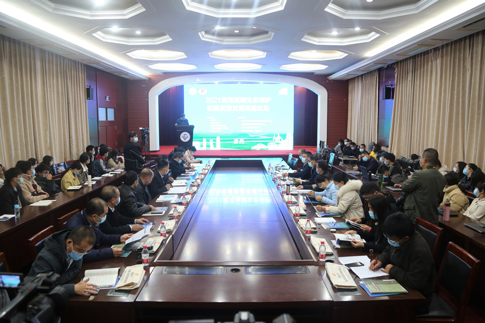 为贯彻落实习近平总书记在黄河流域生态保护和高质量发展座谈会上的重要讲话精神,深入推动《黄河流域生态保护和高质量发展规划纲要》的实施,加强对黄河流域生态保护和高质量发展重大理论和实践问题的研究,11月20日,2021黄河流域生态保护和高质量发展高层论坛以线上线下相结合的方式在河南大学明伦校区小礼堂举行。本次论坛由河南大学、中国地理学会、黄河水利委员会黄河水利科学研究院、河南省发展和改革委员会、河南省文物局主办,河南大学黄河文明与可持续发展研究中心、黄河文明省部共建协同创新中心、河南大学地理与环境学院、河南黄河实验室(河南大学)承办。