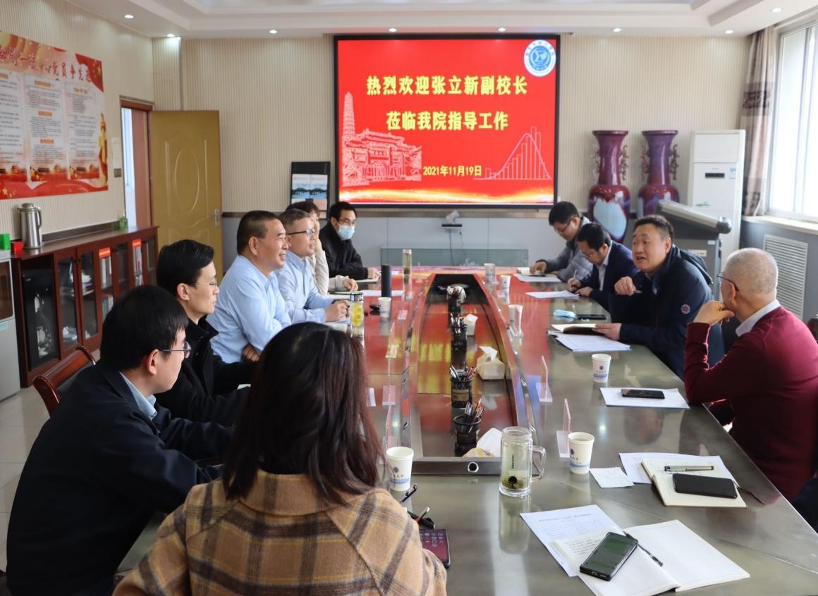 11月19日上午,副校长张立新到数学与统计学院调研指导工作,并在学院二楼会议室举行调研座谈会,学院领导班子全体成员、两办主任及部分教师代表参加座谈。会议由院党委书记史富强主持。